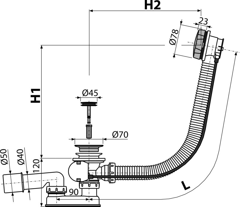 Alcaplast A55K fürdőkádszifon automata komplett