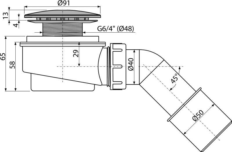 Alcaplast A471CR 60 zuhanytálca szifon króm