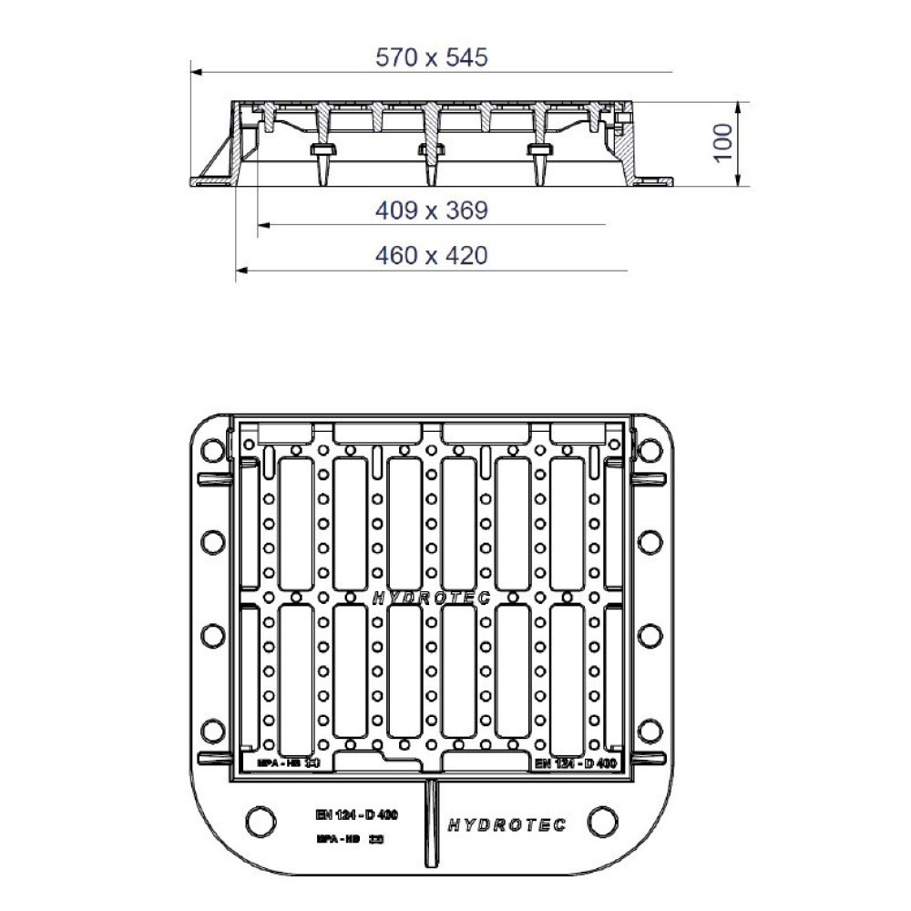 Akna víznyelő DUNA szögletes átm. 570X545 400KN
